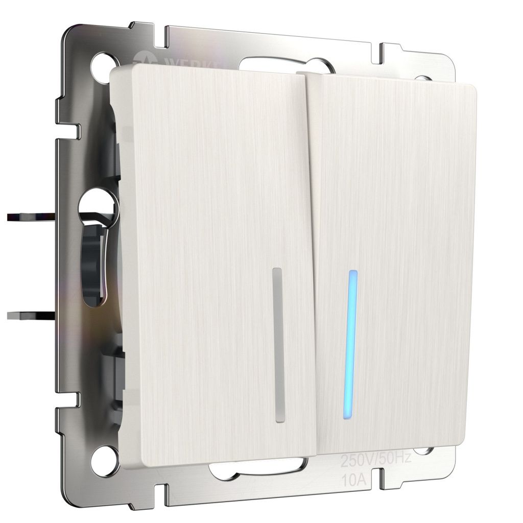 Выключатель двухклавишный с подсветкой перламутровый рифленый Werkel W1120113 4690389160905 a051186 купить по цене от 2 074 руб. с доставкой в интернет-магазине Lampart