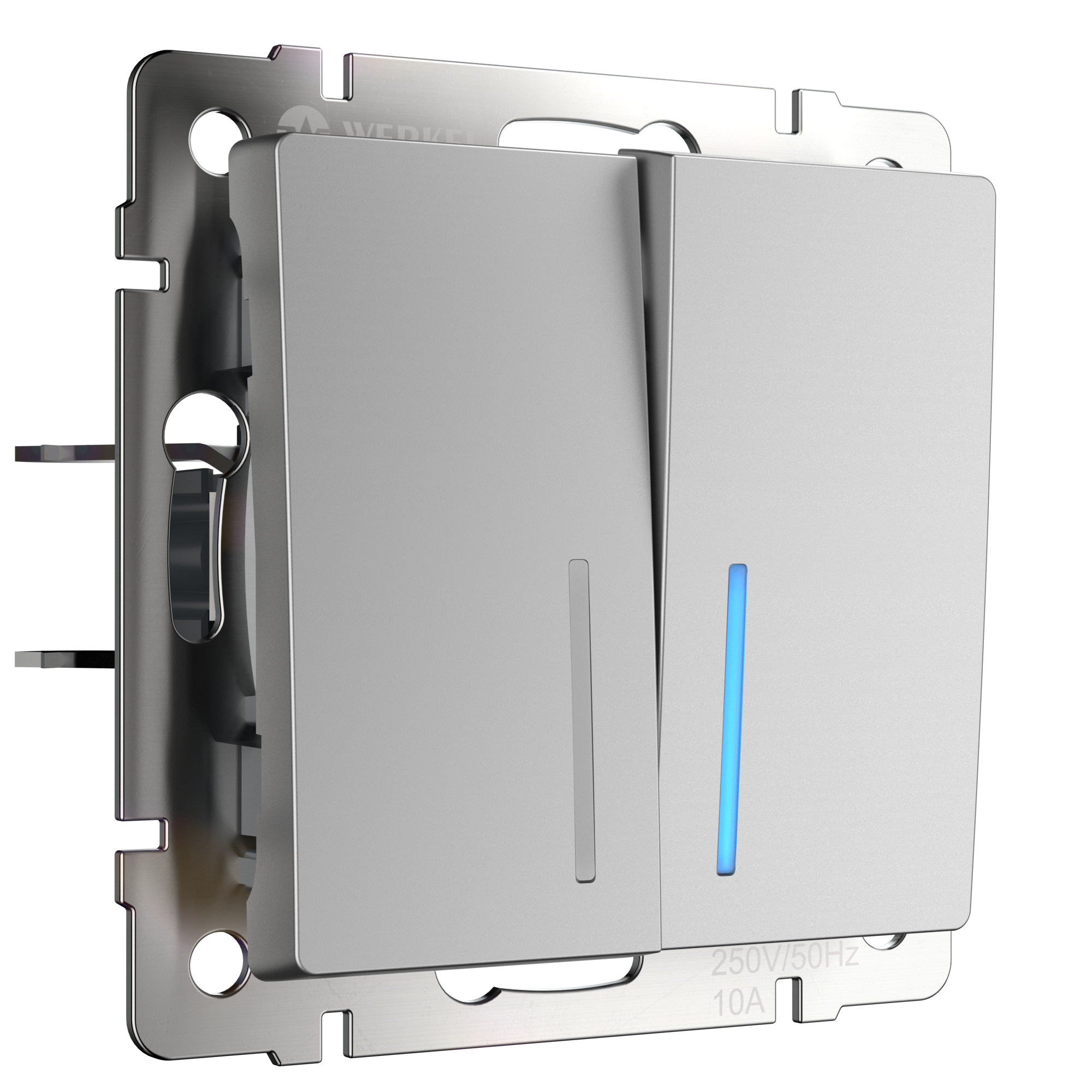 Выключатель двухклавишный с подсветкой Werkel серебряный W1120106 – купить в Москве, цены, фото, характеристики