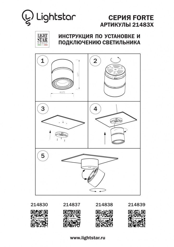 Спот Lightstar Forte Muro 214837 купить по цене от 8 399 руб. с доставкой в интернет-магазине Lampart